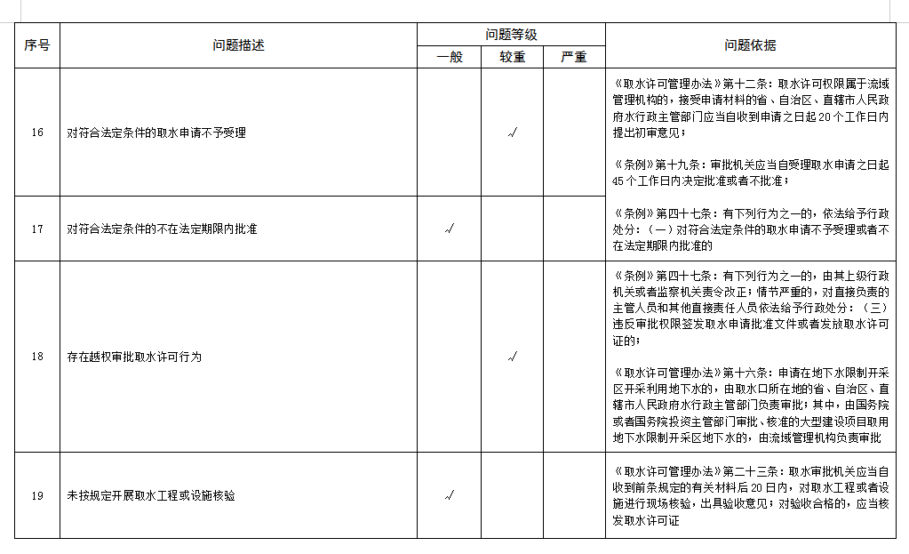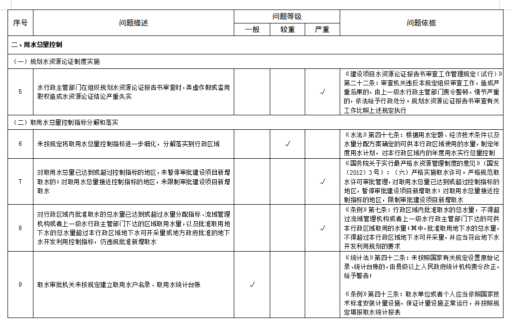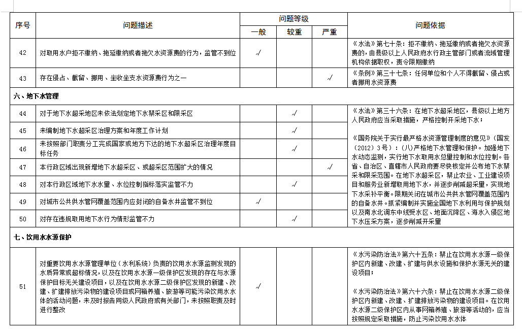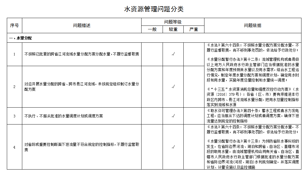 水资源管理问题按照严重程度分为一般问题、较重问题和严重问题三个等级。