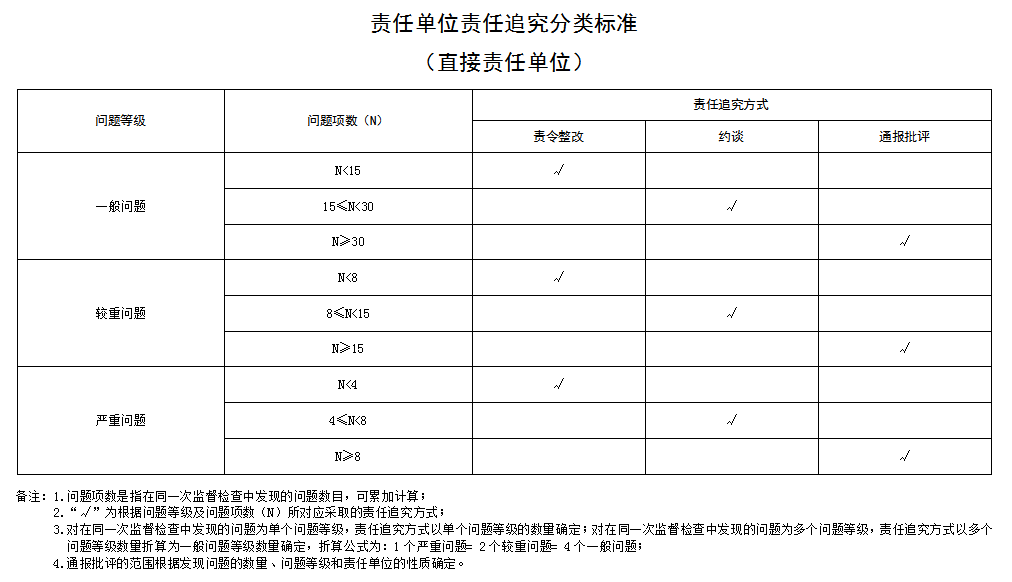 责任人是指对检查中发现的问题负有责任的单位负责人、分管领导和直接责任人员。